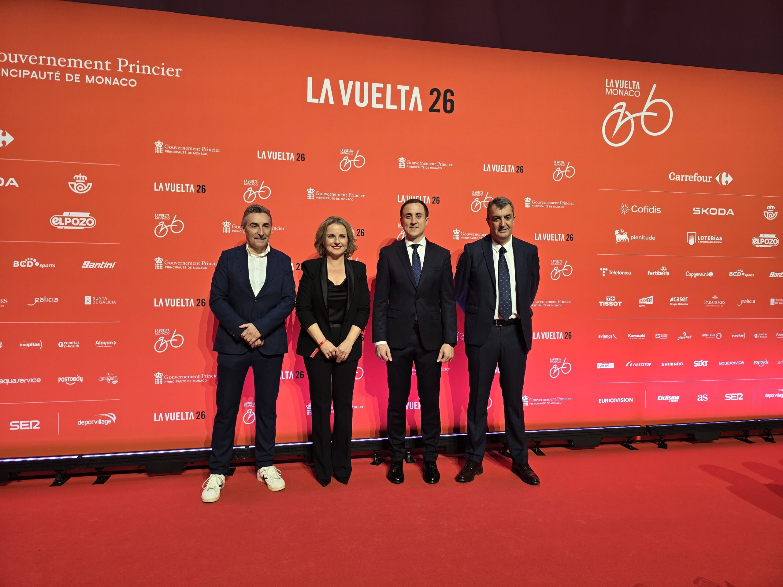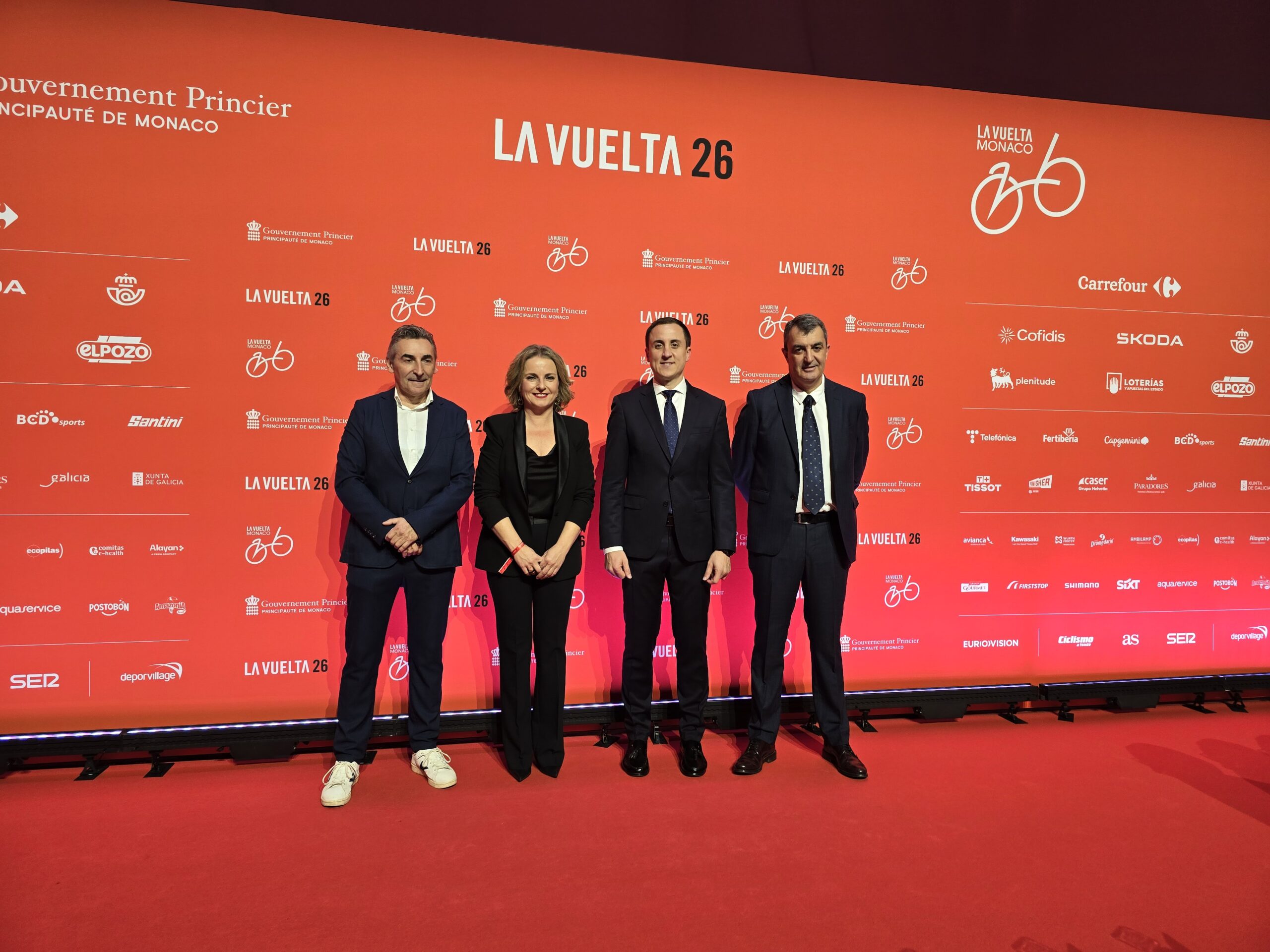 La diputada provincial de Deporte, Vida Saludable y Juventud, María Luisa Cruz, y el alcalde de Vera, Alfonso García, han asistido a la presentación de La Vuelta 2026, que ha tenido lugar esta tarde en el Monte-Carlo Spotting Club Salle des Étoiles, en Mónaco.