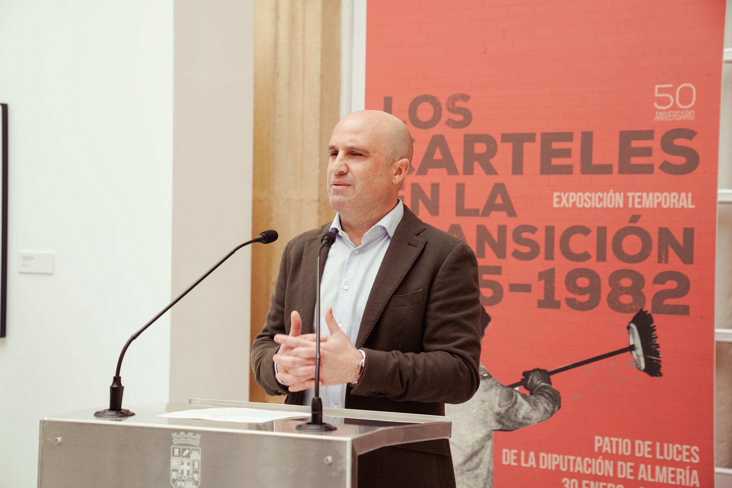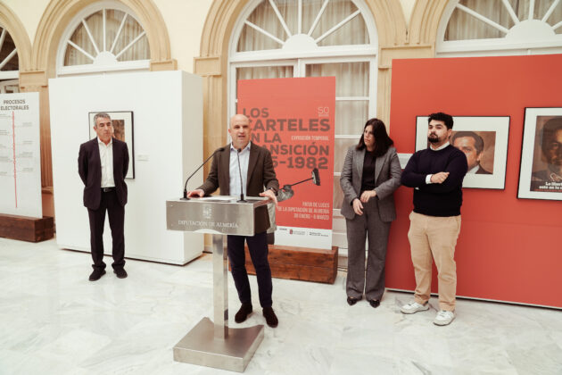 La exposición ‘Los carteles en la Transición – 1975 – 1982’ ha abierto hoy sus puertas al público en el Patio de Luces del Palacio Provincial y se podrá visitar hasta el próximo 6 de marzo. En el acto inaugural han intervenido el presidente de la Diputación de Almería, José Antonio García Alcaina; el presidente de la Fundación Museos de Terque, Alejandro Buendía y el comisario de la muestra, Francisco Javier García.