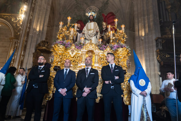 Después, en la Catedral de Almería, el presidente ha compartido los momentos previos con ilusión y nervios, y la emocionante salida de la Hermandad del Prendimiento. García Alcaina ha tenido la oportunidad de realizar una levantá al paso de misterio de Nuestro Padre Jesús en su Prendimiento.