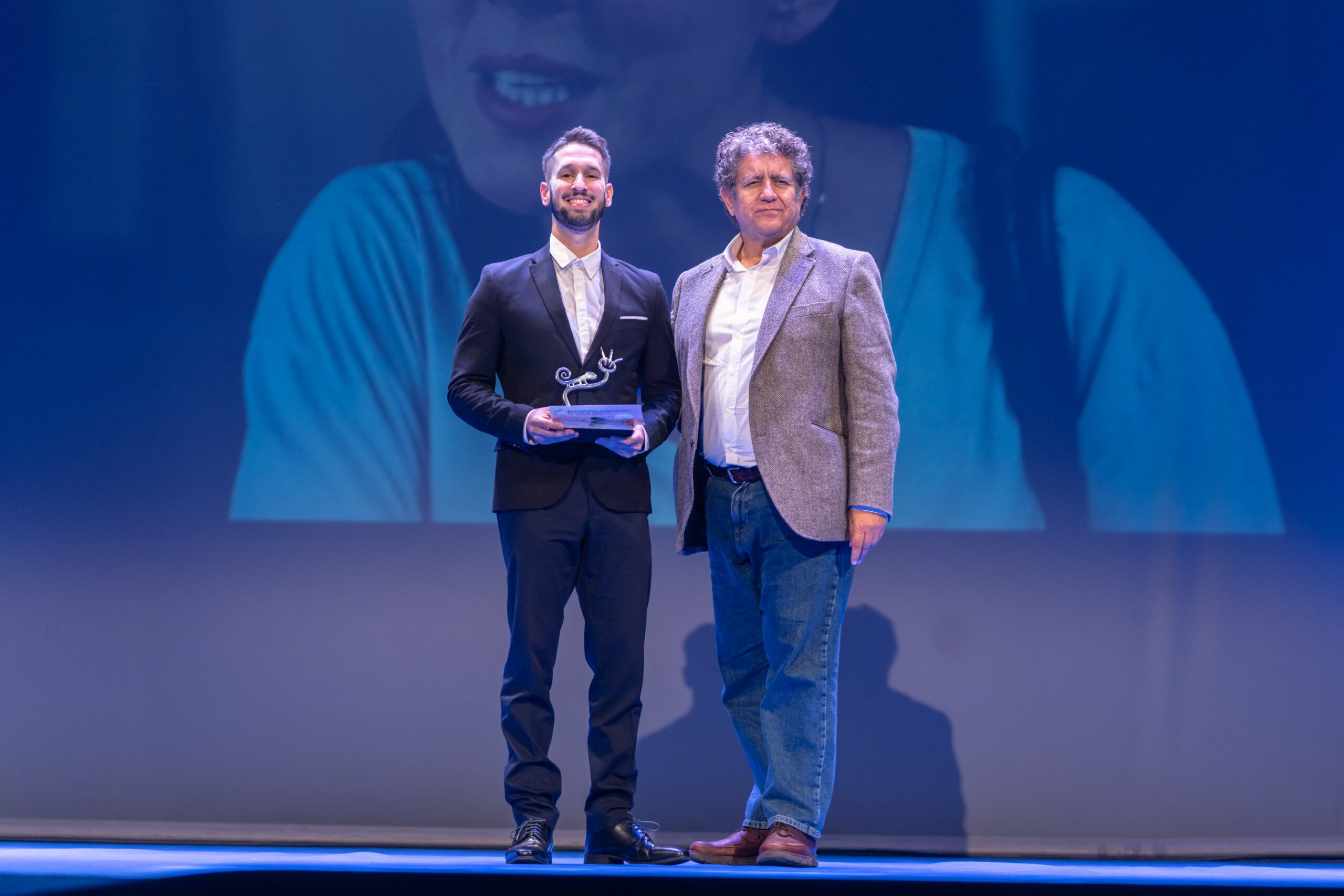 Y el Premio a la Mejor Interpretación Masculina ha sido para Carlos Santos, por “Ángulo Muerto”. Ha recogido el premio en su nombre Cristian Beteta, director de la película. Se lo ha entregado la productora Rosa María Pérez.