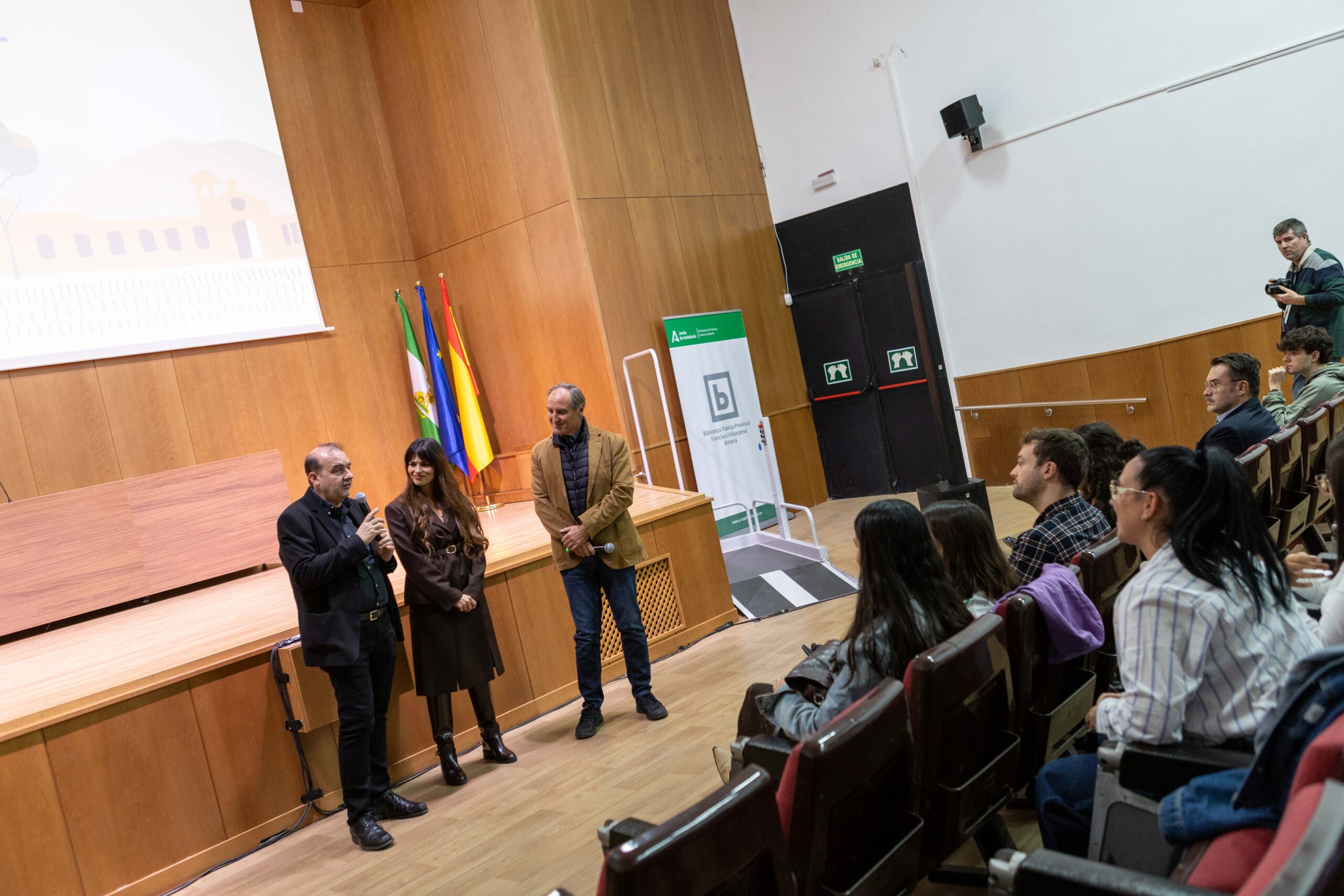 Acompañada por el director del Festival Internacional de Cine de Almería (FICAL) y el concejal delegado del Área de Ciudad Activa, Movilidad Urbana y Deporte del Ayuntamiento de la capital, Antonio Casimiro, la actriz y directora Sara Sálamo ha llevado hoy su primera película documental al salón de actos de la Biblioteca Villaespesa, ‘En silencio. La resilencia de Isco Alarcón’. Un broche por todo lo alto para la sección FICAL Documental, que se consolida así como otra actividad paralela que nutre a las óperas primas, estrenos, cortos y series que acoge el festival.