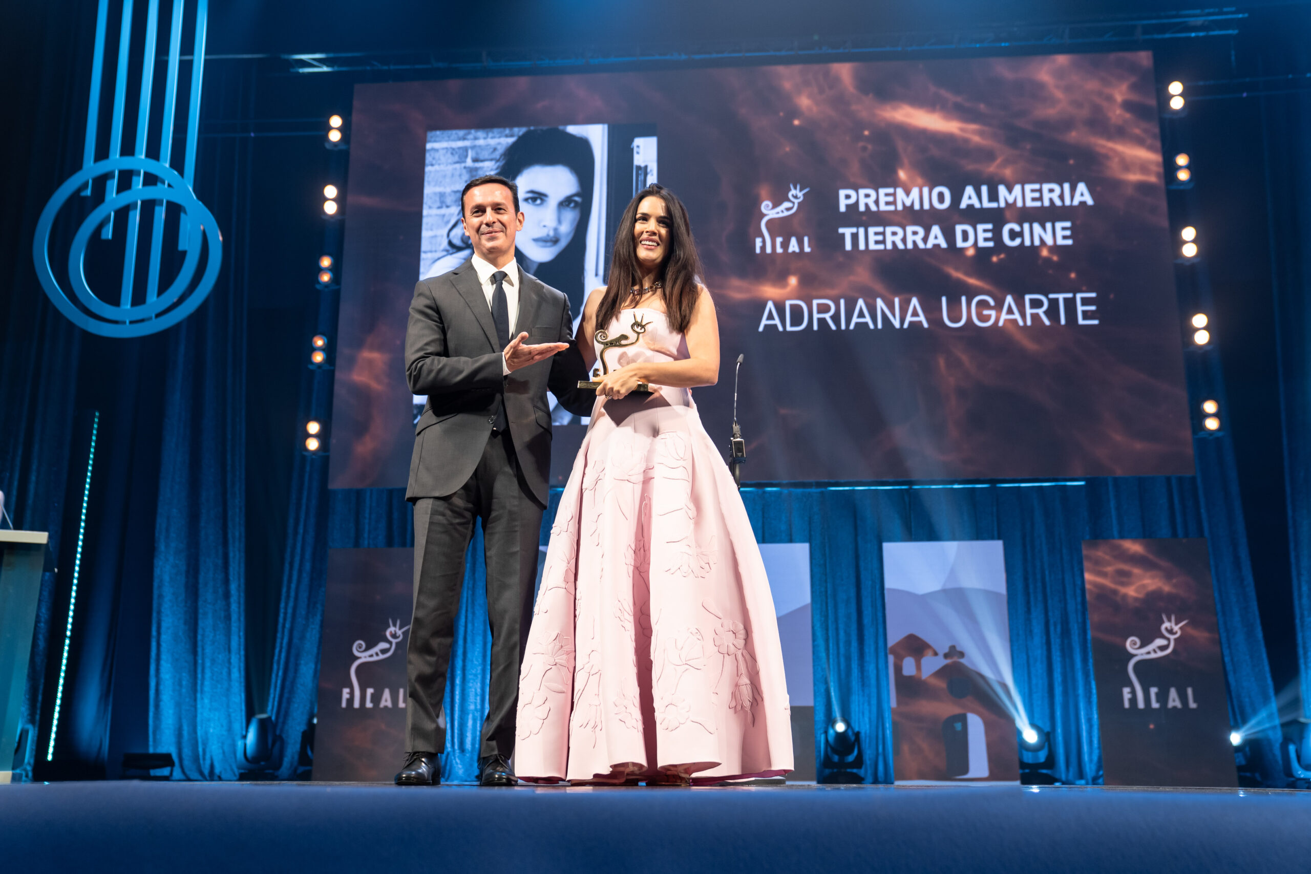 El momento de máxima audiencia ha sido la entrega del premio Almería Tierra de Cine a Adriana Ugarte, que se ha vuelto a emocionar, como ya hiciera por la mañana. Adriana Ugarte confiesa que “cuando me informaron de la estrella y el premio, me sentí sobrepasada, muy emocionada, tendré que venir dentro de dos años, de incognito, para asimilarlo” y ha añadido que “rodar en Almería me llena de energía, porque estos paisajes tienen un magnetismo y magia invisible que actúan como imán”. A su lado, el presidente de Diputación, Javier A. García, ha anunciado que “Adriana Ugarte tiene en sus manos la mayor distinción que ofrece nuestra tierra a los cineastas: El Premio ‘Almería Tierra de Cine’. Comienza una semana cargada de cine, sueños y, sobre todo, ilusión», ante la atenta mirada de la alcaldesa de Almería, María del Mar Vázquez, y la delegada del Gobierno andaluz en Almería, Aránzazu Martín, así como el director de FICAL, Enrique Iznaola.