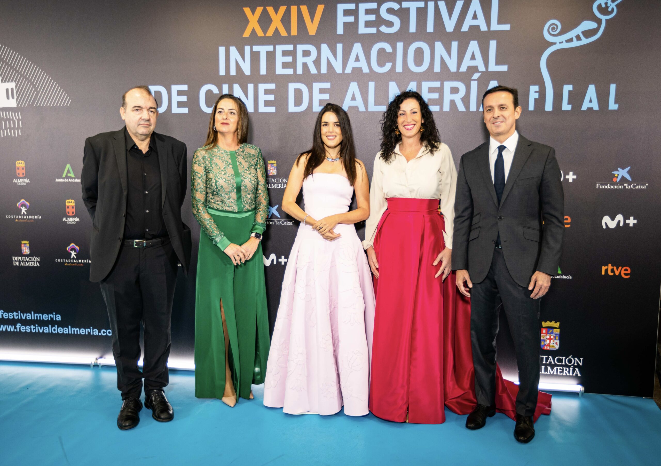 El XXIV Festival Internacional de Cine de Almería (FICAL) ha iniciado el rodaje de la historia amor de Almería con el cine con la Gala Inaugural, esta noche en el Auditorio Maestro Padilla, cuyas primeras escenas han sido protagonizadas por la actriz Adriana Ugarte, que por la mañana ha descubierto su Estrella en el Paseo de la Fama de la ciudad, y esta noche ha recibido el premio Almería Tierra de Cine de manos del presidente de Diputación, Javier A. García. Un reparto que también ha incluido, entre otros actores, a los protagonistas de ‘Papeles’, Megan Montaner, Carlos Bardem y Antonio Dechent, que se ha estrenado en primicia tras la Gala, y ‘La Boda’, Elena Furiase, Daniel Chamorro, Antonio Dechent, Felipe García Vélez, Margarita Lascoiti y María Jesús Hoyos, que tendrá su estreno nacional mañana, sábado, en FICAL. Una ceremonia con banda sonora en directo con el pop de Natalia Lacunza.