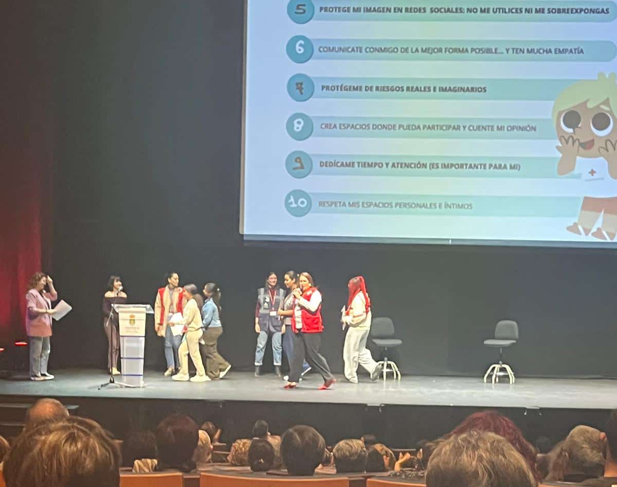 Junto a la actriz invitada, Luna Fulgencio, leyeron el decálogo del buen trato de niños, niñas y adolescente elaborado por cruz Roja. Los mayores leyeron un cuento, con Luna también como testigo, que se llama ‘Las Huella de la abuela clara, el cual sensibilizaba sobre la importancia de las relaciones intergeneracionales y la importancia de la transmisión de los conocimientos y de la experiencia de los mayores a los niños.