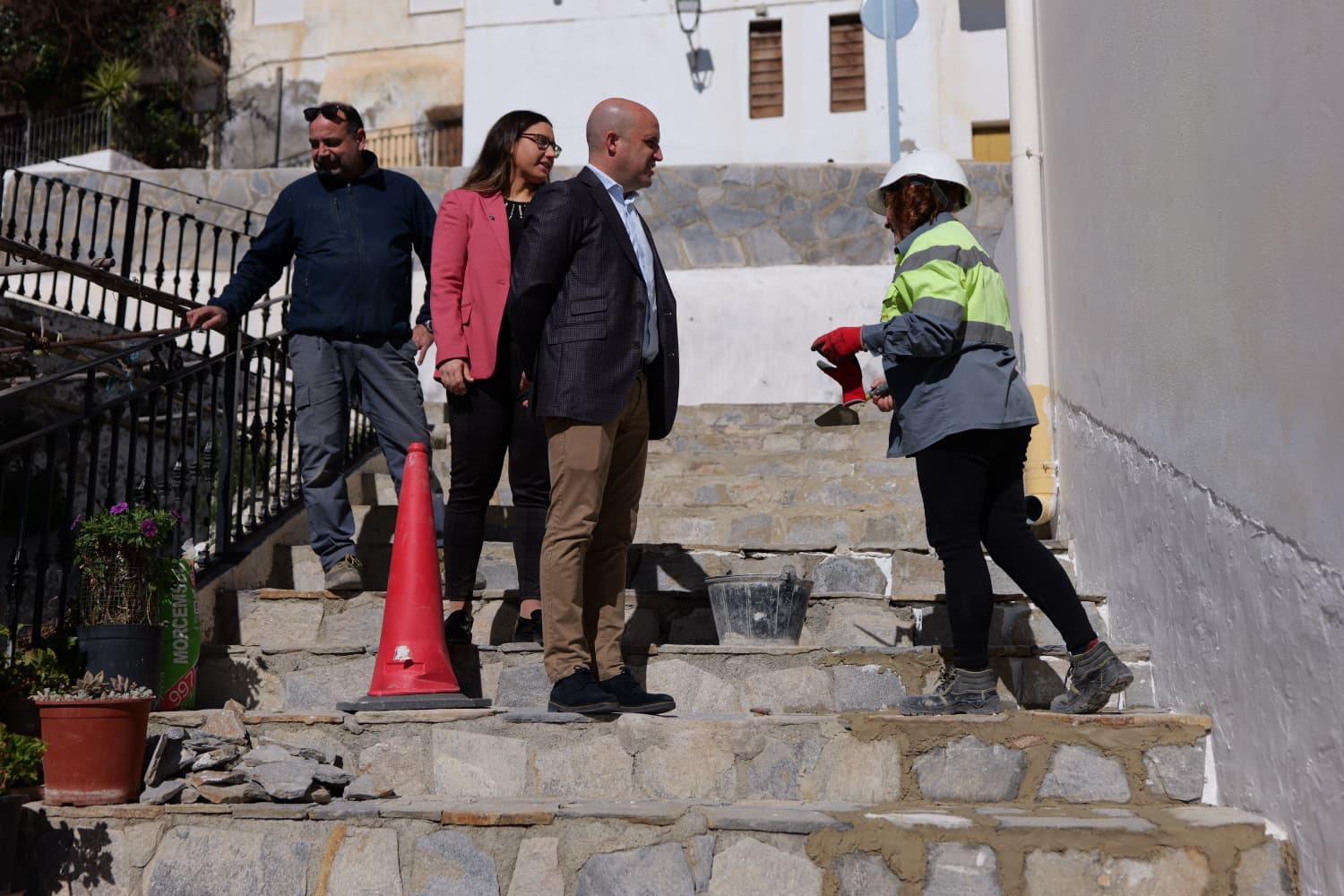 Asimismo, el recorrido ha incluido el paso por diferentes obras del Plan de Fomento de Empleo Agrario como son las mejoras de la calle San Blas, donde gracias al Programa de Fomento de Empleo Agrario (PFEA) se están ejecutando labores de embellecimiento. Además de la renovación de un muro deteriorado y las jardineras de piedra de la zona, el Plan está mejorando la Casa de los Maestros para convertirla en una casa rural.