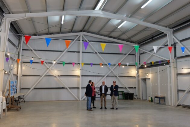 Tras visitar el Ayuntamiento y tras la protocolaria firma del libro de honor, se han desplazado la nueva nave-almacén municipal, una infraestructura clave para los servicios operativos del Ayuntamiento y cuyo futuro es convertirse en espacio polivalente. Esta edificación ha contado con una inversión de 220.000 euros y tiene 254 metros cuadrados construidos sobre una estructura ya existente, cuenta además con una amplia plaza abierta de 236 metros y accesos adaptados.