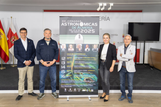 Consolidadas desde hace unos años en el corazón de la primavera, las Jornadas Astronómicas de Almería han presentado hoy el programa de su decimotercera edición, que volverá a reunir a los mejores expertos en la materia, incluido –como viene siendo habitual- la presencia de otro premio Nobel como John Mather y una astronauta como Sara García Alonso. El programa, con cinco conferencias, un planetario portátil y una noche de observación, se desarrollará del 12 al 18 de mayo gracias al trabajo conjunto del Área de Cultura, Tradiciones y Fiestas Mayores del Ayuntamiento de Almería, la Diputación Provincial y la Universidad de Almería.