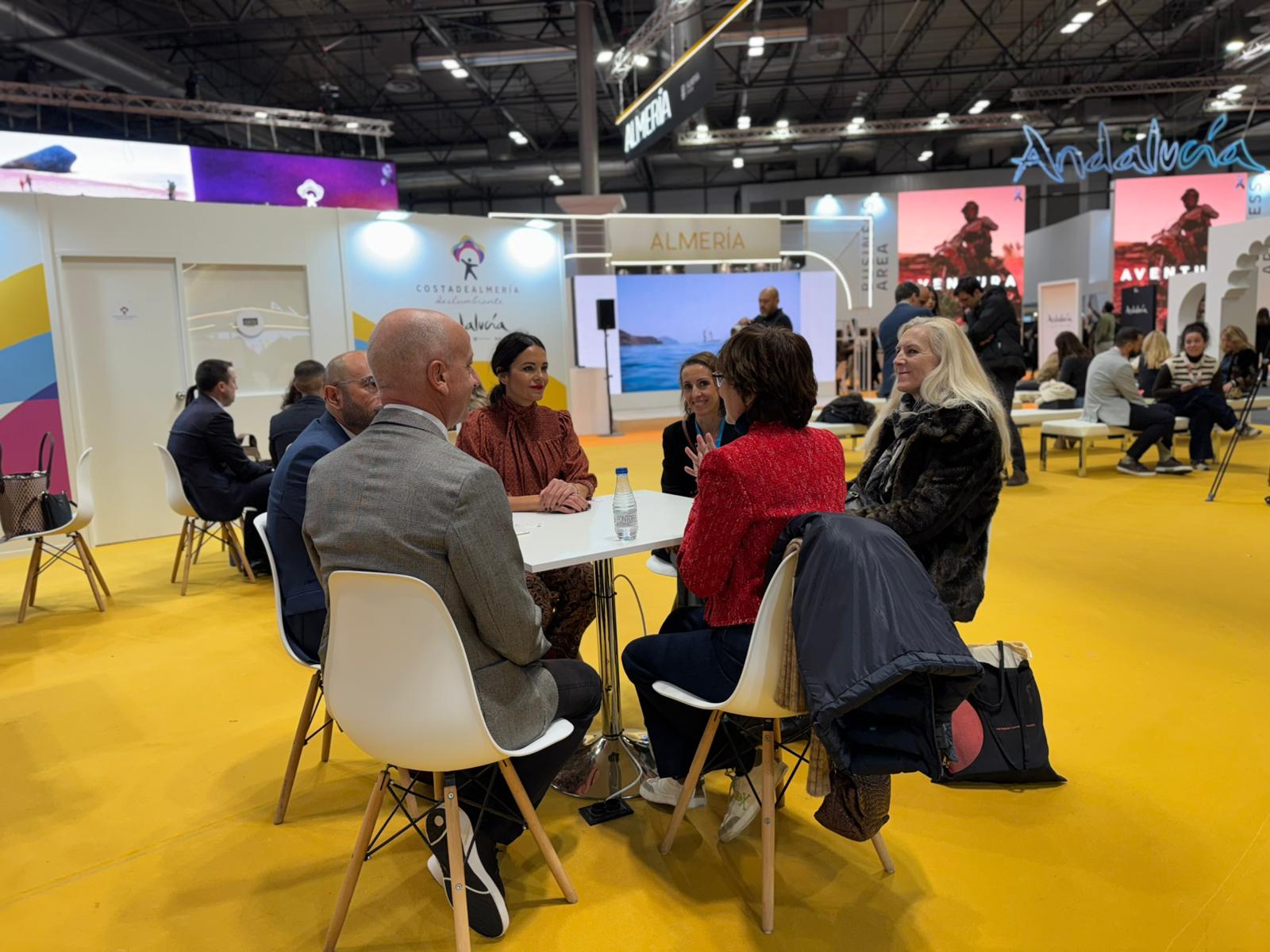 La Diputación Provincial de Almería mantiene en esta edición de FITUR una completa agenda de reuniones de trabajo con aerolíneas, turoperadores, agencias de viajes y otros agentes del sector de ámbito nacional e internacional con el objetivo de alcanzar acuerdos que se traduzcan en la llegada de más visitantes al destino ‘Costa de Almería’. El stand de la provincia continuará recibiendo a profesionales y público general hasta este domingo, 25 de enero, en el Pabellón 5 de IFEMA, Madrid, en su espacio propio dentro de Turismo Andaluz.