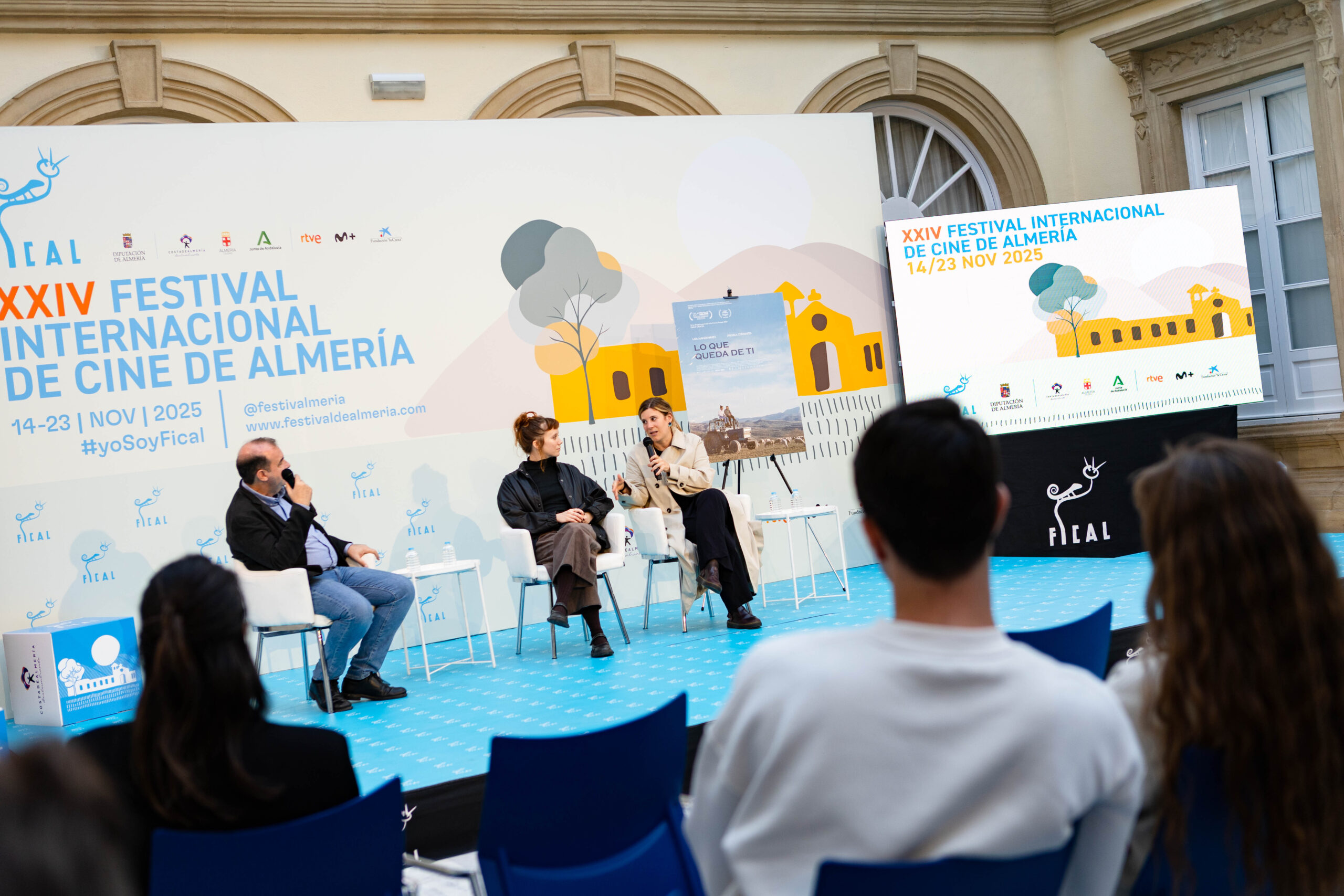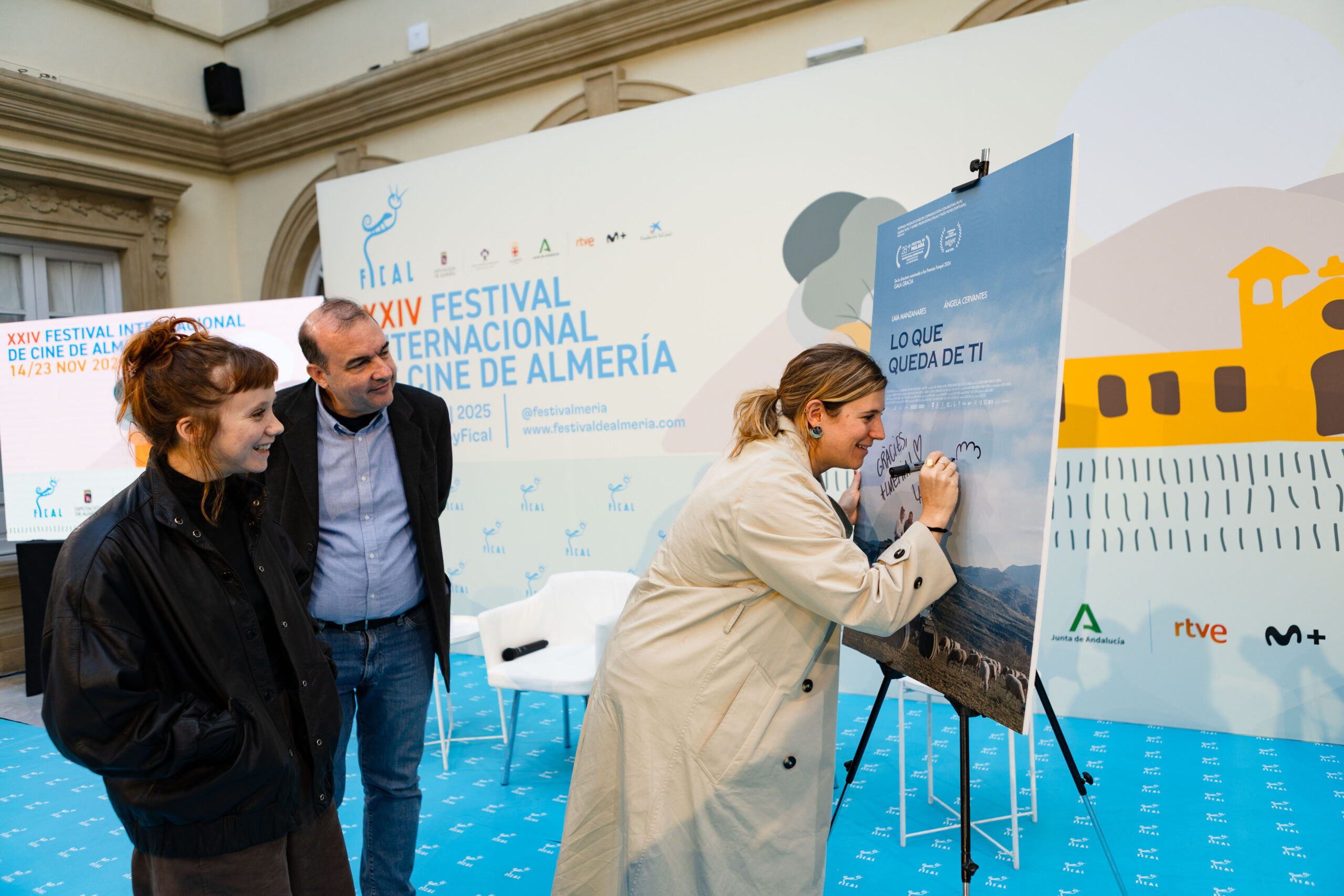 Las dos protagonistas, Laia Manzanares (Sara), que interpreta a una joven pianista de jazz, afincada en Nueva York, que regresa tras la muerte de su padre, y Ángela Cervantes (Elena), la hermana que está arraigada en el trabajo ganadero y ha tenido que llevar el peso del legado familiar, han presentado la película en el marco del certamen nacional Ópera Prima de FICAL. Han estado acompañadas por el director de FICAL, Enrique Iznaola.